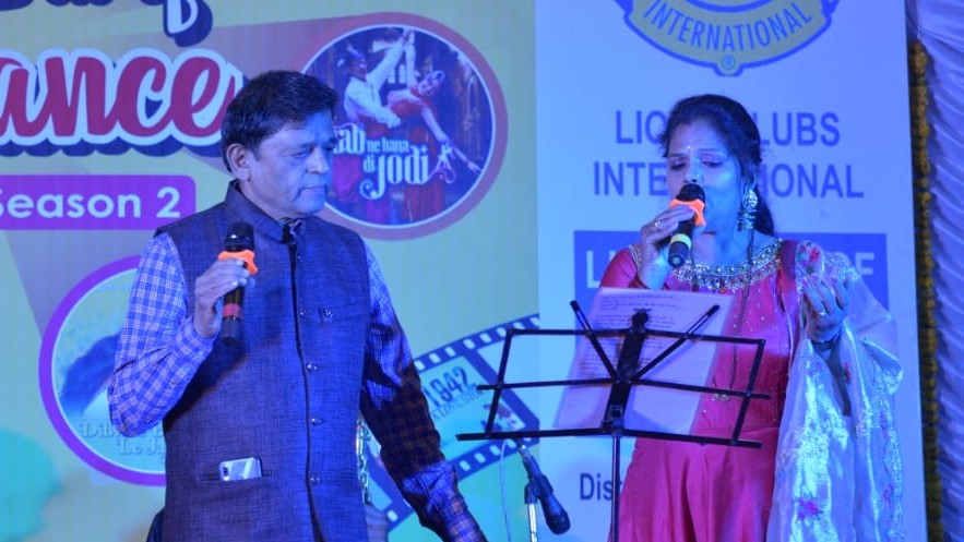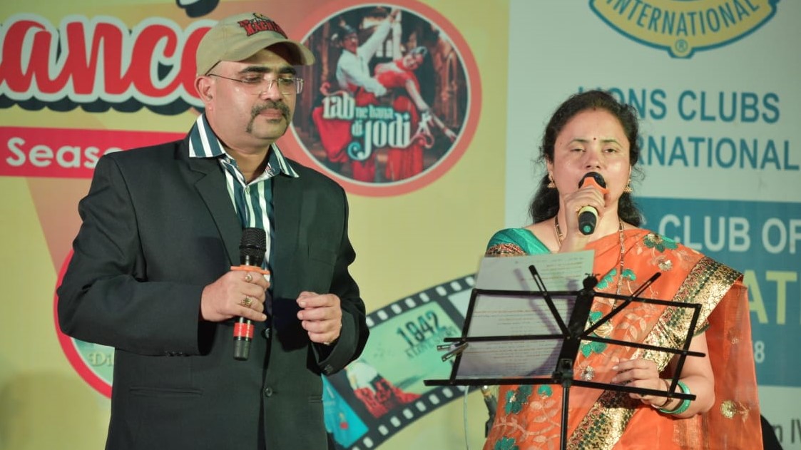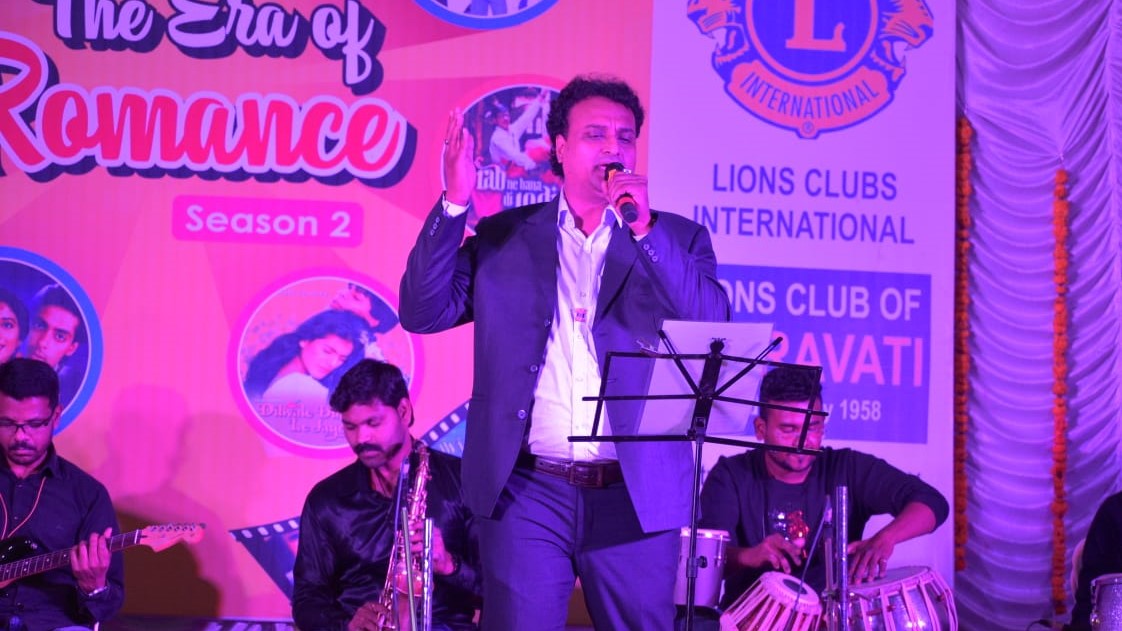 लायन्स क्लब ऑफ अमरावतीचे प्रेसिडेंट डॉ. आशीष बर्डेकर गीत सादर करताना
