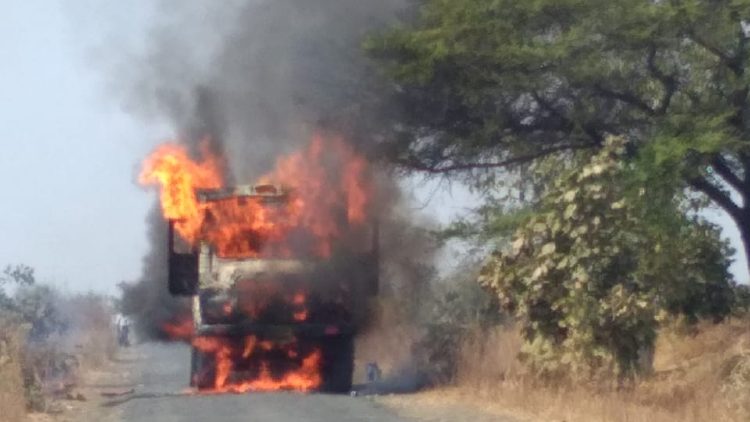 ट्रकने घेतला अचानक पेट, ट्रक जळून भस्मसात