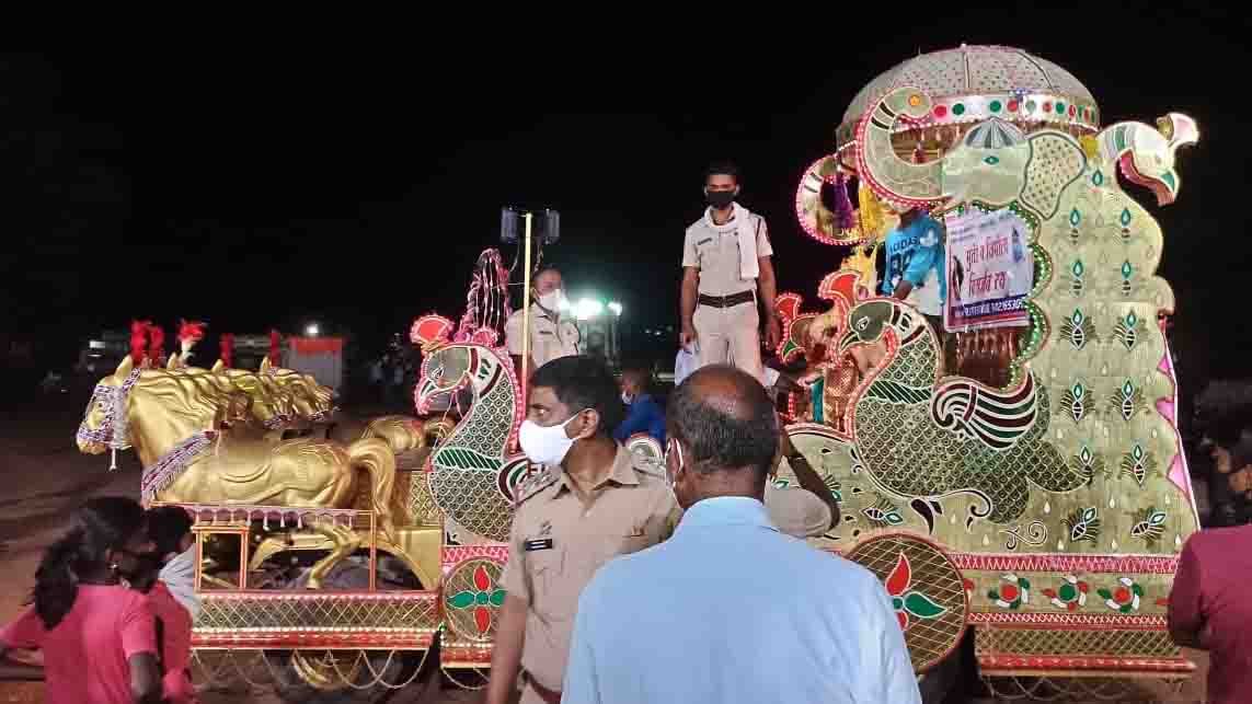 मंगळवारी 1 सप्टेंबर रोजी अनंत चतुर्दशी या पावन पर्वावर सार्वजनिक व घरगुती गणेश विसर्जन झाले. यावर्षी कोरोना विषाणूच्या प्रादुर्भाव असल्याने अत्यंत साध्या पद्धतीने गणेश विसर्जन केले जात आहे. याकरिता पोलीस प्रशासन पूर्णपणे सज्ज आहे. वास्तविक विसर्जन रथाची संकल्पना ही यवतमाळ जिल्ह्याचे पोलीस अधीक्षक एम राजकुमार यांनी अमलात आणली. या संकल्पनेला समोर नेत वणीचे ठाणेदार वैभव जाधव यांनी विसर्जन रथाची संकल्पना पूर्णत्वास नेली आहे.