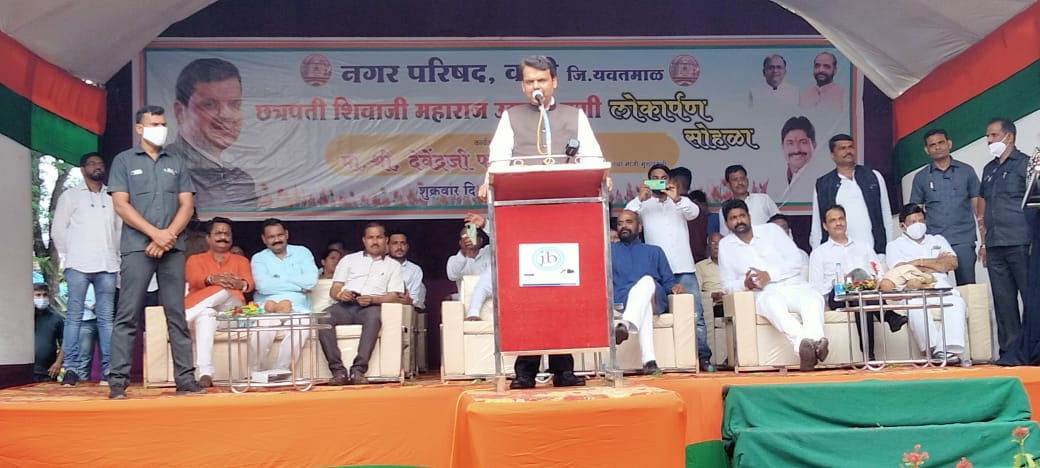 पुढे म्हणाले की सत्तेत असताना आम्ही जनतेसाठी काम केले आणि सत्तेत नसताना जनतेसाठी संघर्ष करीत आहो. गेल्या 2 वर्षापासून राज्य शासनाने शेतकऱ्याना एक नवा पैसा मदत केली नाही. आघाडी सरकारचे मंत्री फक्त टीव्ही पुढे मोठी मोठी घोषणाबाजी करतात आणि नंतर काहीही करत नाही. असा ही आरोप देवेंद्र फडणवीस यांनी केला. स्वराज्याचे रूपांतर सुराज्यमध्ये करण्याचे काम छत्रपती शिवाजी महाराज यांनी केले. पर्यावरण संतुलन राखण्यासाठी छत्रपती शिवाजी महाराज यांनी अनेक नियम तयार केले होते. असेही फडणवीस यांनी सांगितले. मागील एक महिन्यात राज्यात अतिवृष्टीमुळे शेतकऱ्यांचे अतोनात नुकसान झालेले आहे. त्यामुळे राज शासनाने कापूस व सोयाबीन उत्पादक शेतकऱ्यांना त्वरित नुकसान भरपाई द्यावी. अशी मागणी देवेंद्र फडणवीस यांनी राज्य सरकारकडे केली.