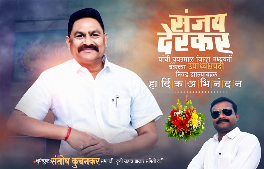 शुभेच्छुक: संतोष कुचनकर, सभापती, कृषी उत्पन्न बाजार समिती वणी