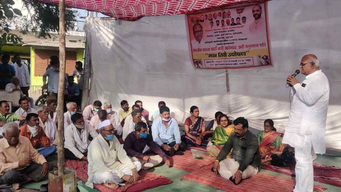 जितेंद्र कोठारी, वणी: विधानसभा क्षेत्रातील शेतकऱ्यांच्या विविध समस्याना घेऊन भारतीय जनता पक्षातर्फे शुक्रवार 4 फेब्रुवारीला ‘गाव तिथे उपोषण’ आंदोलन करण्यात आले. वणी, मारेगाव व झरीजामणी तालुक्यातील तब्बल 110 गावात आयोजित एक दिवसीय सांकेतिक उपोषण मंडपाला आमदार संजीवरेड्डी बोदकुरवार यांनी भेट दिली.