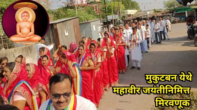 जितेंद्र कोठारी, वणी : जगाला ‘अहिंसा परमो धर्म’ व ‘जिओ और जीने दो’ चा संदेश देणाऱ्या भगवान महावीर यांची जयंती मंगळवार 4 एप्रिल रोजी मुकुटबन येथे उत्साहात साजरी करण्यात आली. जैन स्थानकामध्ये नमोकार मंत्र जप, शोभायात्रा, ध्वजारोहण, गीत, गायन व गौतमप्रसादीचे आयोजन यावेळी करण्यात आले होते.