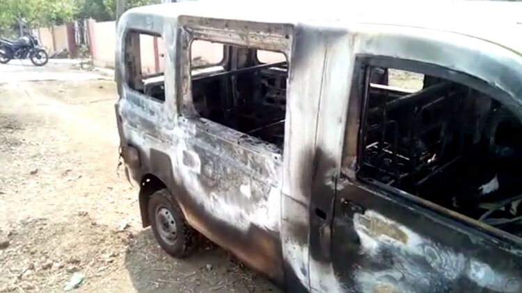 आगीत प्रवासी वाहन जळून भस्मसात