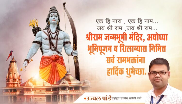 ऍडव्हटोरिअलवणीवार्ता अयोध्या येथील श्रीराम मंदिराच्या भूमिपूजन सोहळ्यास हार्दिक शुभेच्छा शुभेच्छुक: उज्ज्वल पांडे, राष्ट्रहित संवर्धन समिती वणी By WaniBahuguni Desk On Aug 5, 2020 0 37 Share Lead StoryRam MandirUjjwal Pande 0 37 Share WhatsAppFacebookTwitter