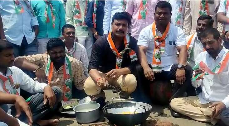 रस्त्यावर भजी तळून काँग्रेसचे महागाई विरोधात अनोखे आंदोलन