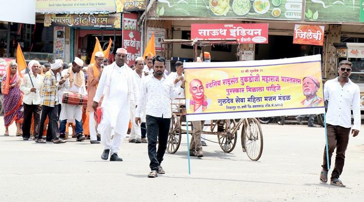 जब्बार चीनी, वणी: राष्ट्रसंत तुकडोजी महाराज यांना मरणोत्तर भारतरत्न द्यावा या मागणीसाठी गुरुदेव सेवा समिती व भजन मंडळ निळापूर तर्फे दंडी काढण्यात आली. दिंडीनंतर तहसीलदार व आमदार यांना निवेदन देण्यात आले. राष्ट्रसंत तुकडोजी महाराज यांनी समाजाला मानवतेचा संदेश दिला. त्यांचे विचार, साहित्याने लोकांना प्रेरणा देण्याचे काम केले. त्यामुळे त्यांना भारतरत्न द्यावा अशी मागणी गुरदेव सेवा समिती व भजन मंडळ निळापूर तर्फे करण्यात आली आहे.