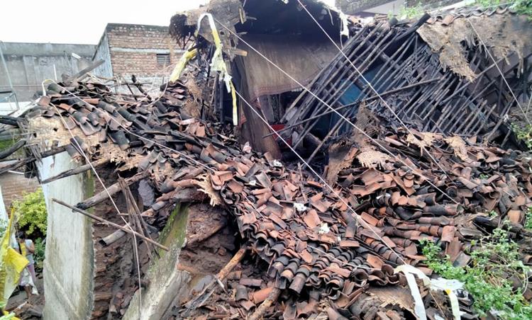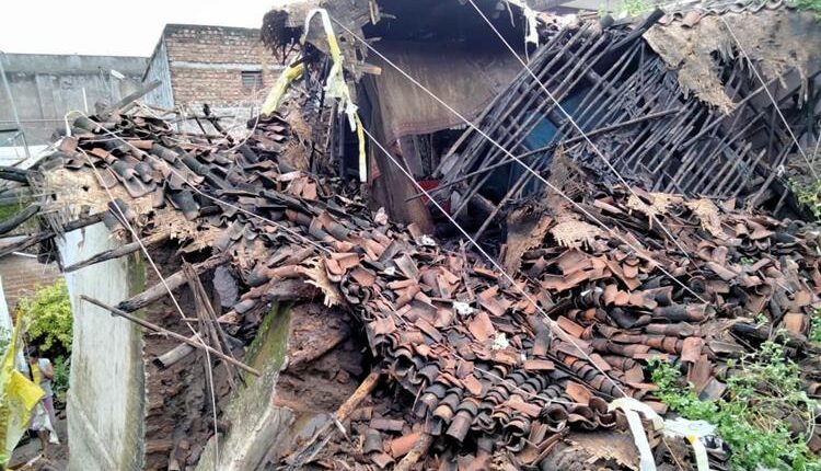 मुसळधार पावसामुळे घराची भिंत व छत कोसळले