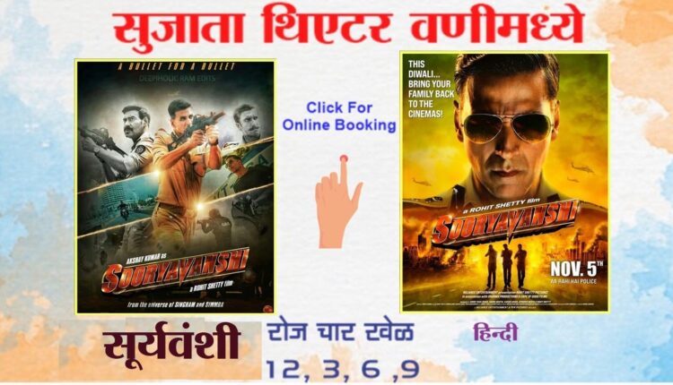 रोहीत शेट्टी यंदाच्या दिवाळीत सूर्यवंशी सिनेमा प्रेक्षकांच्या भेटीला घेऊन आला आहे. सूर्यवंशी सिनेमा भारतातील 4000 पेक्षा अधिक सिनेमागृहात प्रदर्शित होणार आहे. या सिनेमाबद्दल चाहत्यांमध्ये कमालीची उत्सुकता होती. अखेर हा सिनेमा रिलिज होतोय. वणीतील लक्झरी व फुल एसी असलेल्या सुजाता थिएटरमध्ये हा चित्रपट आज रिलिज होतोय. रोज 4 खेळ या सिनेमाचे असणार आहे.