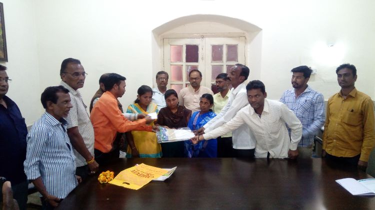 कार्यक्रमाचे संचालन सागर मुने यांनी तर उपस्थितांचे आभार परशुराम पोटे यांनी मानले. यावेळी रमेश पाटील यांची पत्नी दुर्गा व मुलींना रोख रक्कम व साडी देऊन सन्मानित करण्यात आले.