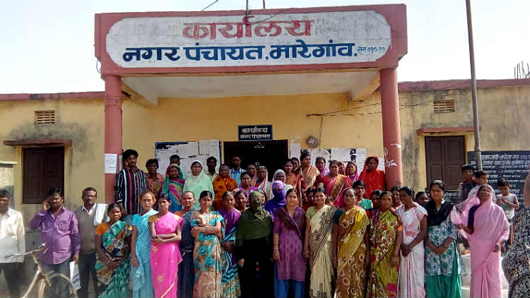 ज्योतिबा पोटे, मारेगाव: मारेगाव नगरपंचायतवर प्रभाग क्रमांक ११ मधील शेकडो महिलांनी शनिवारी नगर पंचायतीला धडक दिली. प्रभागातील बोरवेल गेल्या दोन महिन्या पासून बंद असल्याने तिथे पाण्याची समस्या निर्माण झाली आहे. त्यामुळे संतप्त झालेल्या महिलांनी सकाळी साडे अकराच्या सुमारात नगर पंचायत कार्यालयात धडक दिली. मात्र तेव्हा कार्यालयात कुणीही जबाबदार कर्मचारी वा नगरसेवक नसल्याने महिला काही काळ आक्रमक झाल्या होत्या.