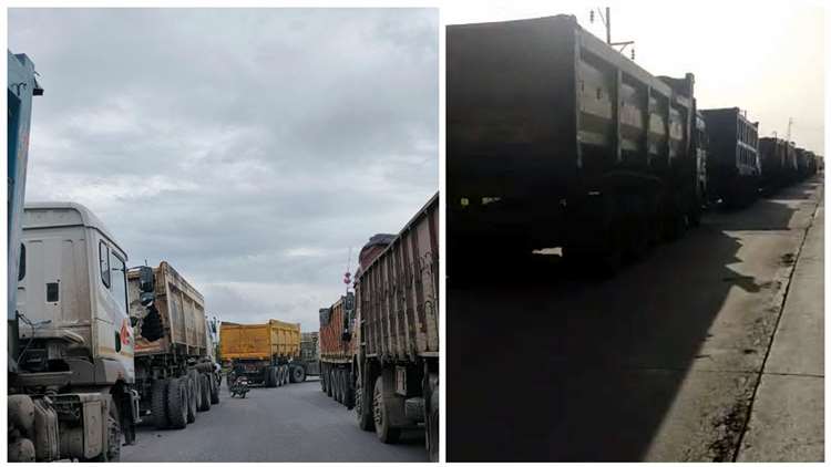 रस्त्याच्या दुतर्फा उभ्या असलेल्या ट्रकमुळे वाहतूक प्रभावित