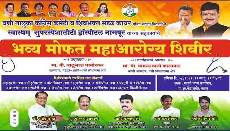 वणी तालुका कॉंग्रेस कमेटी, शिवभक्त मंडल कायर यांचा उपक्रम... महाआरोग्य शिबिराचा लाभ घेण्याचे डॉ. महेंद्र लोढा यांचे आवाहन