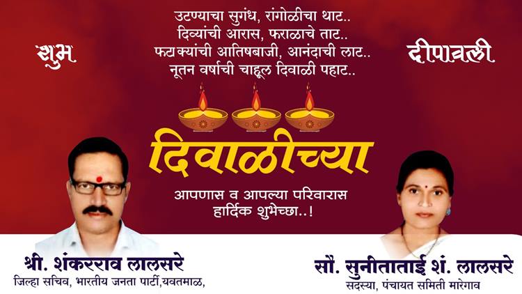 ऍडव्हटोरिअलवणीवार्ता शंकरराव लासरसे व सुनिताताई लालसरे यांच्या तर्फे दिवाळीच्या हार्दिक शुभेच्छा शुभेच्छुक: शंकरराव लासरसे (जिल्हा सचिव, भाजप) व सुनिताताई लालसरे (सदस्य, पं.स. मारेगाव) By WaniBahuguni Desk On Nov 6, 2021 16 Share Lead Story 16 Share WhatsAppFacebookTwitter