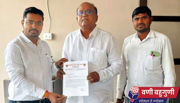 वणी-कोरपना रस्त्याच्या चौपदरीकरणासह विविध मागण्यांसाठी निवेदन
