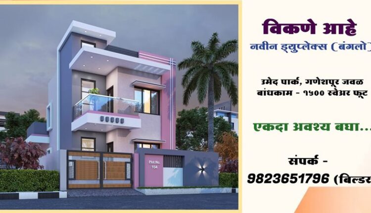 बहुगुणी डेस्क, वणी: वणी शहरालगत असलेल्या गणेशपूर येथील उमेद पार्क या लेआऊटमध्ये एक नवीन ड्युप्लेक्स बंगला विकणे आहे. 1291 स्वेअर फुट अशा प्रशस्त जागेत हा बंगला/ड्युप्लेक्स असून यात 1500 स्वेअर फुटाचे बांधकाम करण्यात आले आहे. शिवाय घराच्या आवारात पार्किंगसाठी प्रशस्त जागा आहे. घरी सबमर्सिबल मशिनसह बोअरवेलची व्यवस्था आहे. त्यामुळे 24 तास पाणी उपलब्ध आहे. सदर व्यवहार हा थेट बिल्डरशी असल्याने यात ग्राहकांचे ब्रोकेज वाचणार आहे.