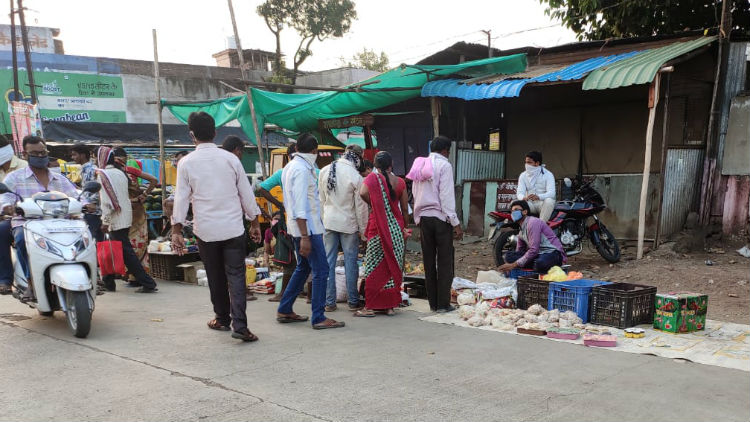 भाजीच्या दुकानात सोशल डिस्टन्सिंगचे नियम धाब्यावर