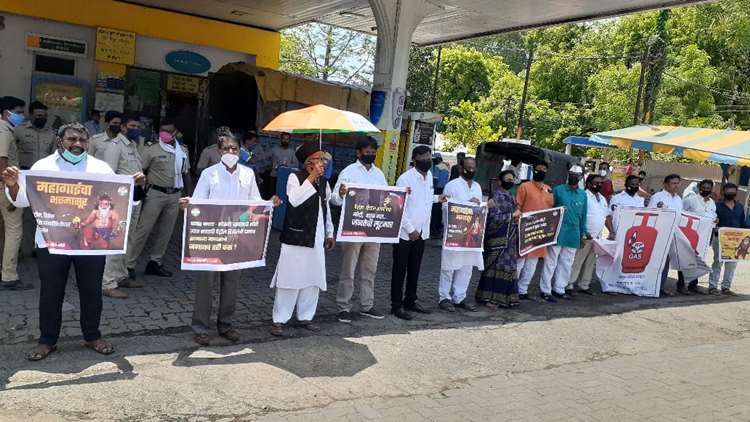 लाठीवाला पेट्रोलपम्पजवळ इंधन दरवाढविरोधात जोरदार निदर्शने