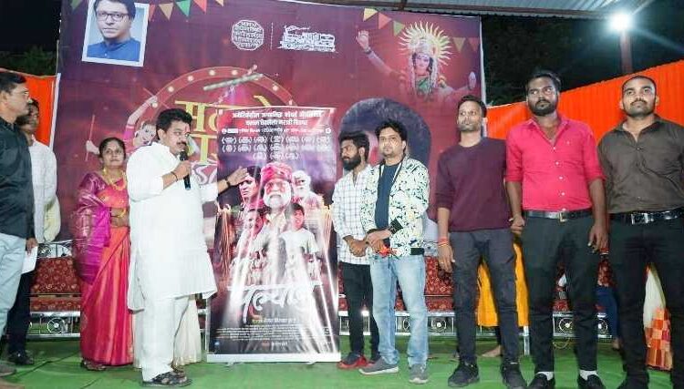 जितेंद्र कोठारी, वणी : चंद्रपूरच्या मातीमध्ये तसेच चंद्रपूरच्या स्थानिक कलाकारांना सोबत घेऊन बनविण्यात आलेले ‘पल्याड’ ह्या मराठी चित्रपटाच्या पोस्टरचे अनावरण महाराष्ट्र नवनिर्माण सेनेचे राज्य उपाध्यक्ष राजु उंबरकर यांचे हस्ते करण्यात आले. मंगळवार 4 ऑक्टो. रोजी वणी येथील शेवाळकर परिसरात आयोजित मनसे गरबा महोत्सव कार्यक्रमात सहनिर्माता रोशनसिंह बघेल, सहा. दिग्दर्शक तुषार चाहरे, सहा. सिनेमाटोग्राफर भूषण तपासे व टीम मेम्बर पंकज मलिक व सुरज उमाटे यांच्या उपस्थितीत पोस्टर अनावरण सोहळा पार पडला.