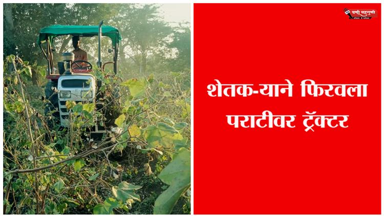 नागेश रायपुरे, मारेगाव: तालुक्यातील कान्हाळगाव येथील शेतकरी राजेंद्र चिकटे यांनी आपल्या शेतातील पराटीवर ट्रक्टर फिरवून पीक नष्ट केले. याआधीही तालुक्यात अनेक शेतक-यांनी उभ्या पिकांवर नांगर आणि ट्रॅक्टर फिरवून पिके नष्ट केली आहेत.