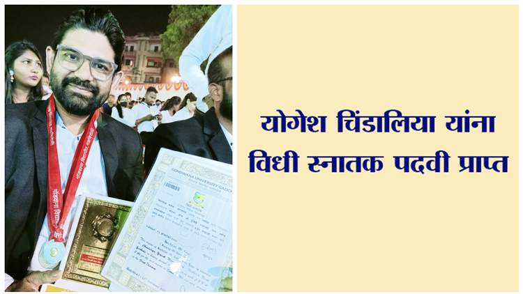 बहुगुणी डेस्क, वणी: शहरातील व्यावसायिक योगेश मंगल चिंडालिया यांनी गोंडवाना विद्यापिठाची विधी स्नातक ही पदवी प्रथम श्रेणीत प्राप्त केली. ते सर्वोदय शिक्षण मंडळ चंद्रपूर येथील सरदार पटेल महाविद्यालयाचे विद्यार्थी आहे. नुकताच गोंडवाणा विद्यापीठाचा पदवी वितरण सोहळा पार पडला यावेळी त्यांचा गौरव करण्यात आला. विद्यापीठाचे कुलगुरू डॉ. प्रशांत बोकारे, सुधाताई पोटदुखे, डॉ. अंजली हस्तक, प्राचार्य दिक्षित, काळे यांची या कार्यक्रमाला प्रमुख उपस्थिती होती. योगेश हे आपल्या यशाचे श्रेय पत्नी रश्मी चिंडालिया, ऍडव्होकेट गोविंद दोरके, शिक्षक व कुटुंबीयांना देतात. त्यांच्या या यशाबाबत साई ट्रस्टचे अध्यक्ष डॉ. प्रकाश नंदुरकर, सचिव गणेश घंटेवार, राष्ट्रीय शिक्षक पुरस्कार प्राप्त शिक्षक रमेश बोबडे यांनी त्यांचे अभिनंदन केले. व्यवसाय सांभाळून पदवी प्राप्त केल्यामुळे त्यांचे परिसरात कौतुक होत आहे.
