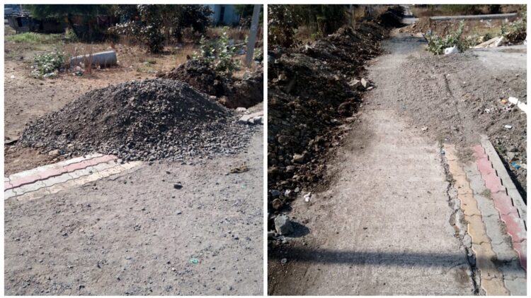 रस्त्याच्या दागडुजीसाठी आणलेली गिट्टी 6 महिन्यांपासून रस्त्यावरच