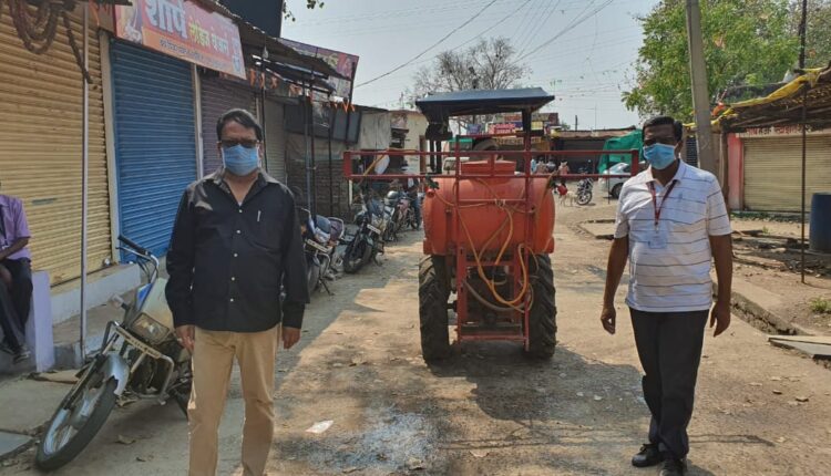 सुशील ओझा, झरी: तालुक्यातील सर्वाधिक लोकसंख्या असलेले गाव म्हणून ओळख असलेल्या मुकुटबन येथे आजपासून गाव निर्जंतुकीकरणास सुरुवात झाली आहे. संपूर्ण गावातील रस्त्याने फवारणी करून गाव निर्जुंतुकीकरण करण्याचे काम ग्राम पंचायतीद्वारा केले जात आहे.