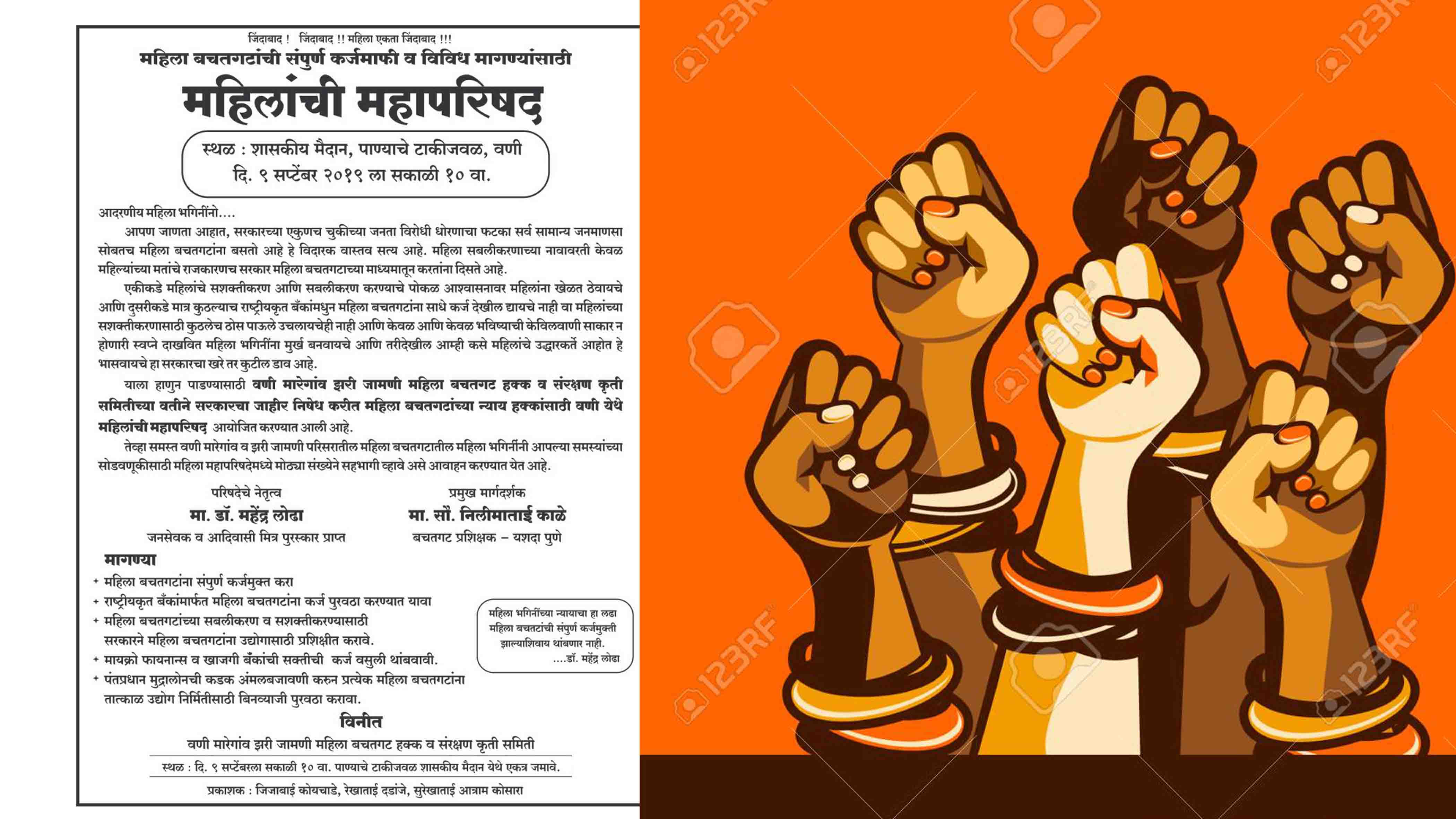बचतगटांनी आता आपल्या समस्या मांडून लढा पुकारला पाहिजे, असं डॉ. महेंद्र लोढा यांनी पत्रकात नमूद केलं. वणी, मारेगाव, झरीजामणी महिला बचतगट हक्क व संरक्षण कृती समितीच्या वतीने सरकारचा जाहीर निषेध करण्यासाठी महिला बचतगटाच्या न्याय्य हक्कांसाठी वणी येथे ही महिलांची महापरिषद आयोजित करण्यात आल्याचे डॉ. महेंद्र लोढा यांनी ‘वणी बहुगुणी’शी बोलताना म्हटलं.