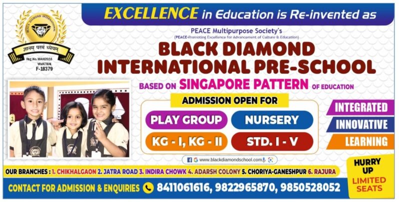 वणीतील ब्लॅक डायमंड स्कूलमध्ये प्रवेश सुरू