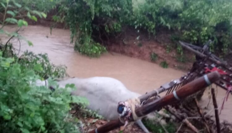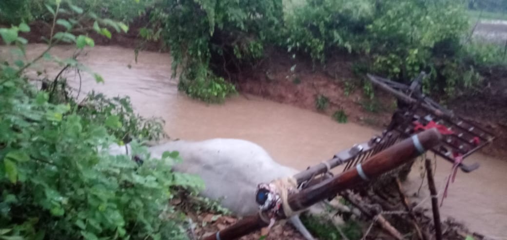 पुराचा अंदाच न आल्याने त्यांच्या बैलबंडी मध्येच अडकल्या. पाण्याच्या प्रवाहाने त्या दोन्ही बैलबंडी उलटल्या. दरम्याने एका बैलबंडीतील एक बैल उसळून बाहेर निघाला. त्या चौघांनीही स्वतःला वाचवण्यासाठी प्रयत्न केला. परंतु त्यांचे प्रयत्न निष्फळ ठरले. पाण्याच्या लोंढ्यात बैलबंडी सह हे चौघेही वाहून गेले. त्यासोबत तीन बैलही वाहन गेले.