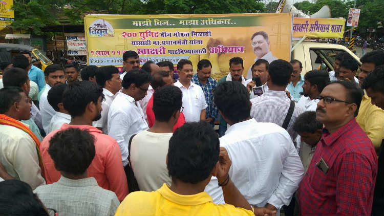 विवेक तोटेवार, वणी: वाढलेले वीजेचे दर कमी करण्यासाठी व 200 युनिट वीज मोफत देण्याच्या मागणीसाठी संजय देरकर यांनी रणशिंग फुंकले आहे. आज शुक्रवारी दिनांक 9 ऑगस्टला क्रांतीदिनाचे औचित्य साधून दुपारी छ. शिवाजी चौक येथे स्वाक्षरी अभियानाचा आरंभ झाला. यावेळी मोठ्या संख्येने शेतकरी व सर्वसामान्य नागरिक उपस्थित होते. मोफत वीज व वीजदराबाबत 1 लाख 11 हजार स्वाक्षरी गोळा करून या स्वाक्षरीचे निवेदन पंतप्रधान नरेंद्र मोदी यांना दिले जाणार आहे. यावेळी मुख्यमंत्र्यांना उपविभागीय अधिकारी यांच्या मार्फत निवेदनही सादर करण्यात आले.
