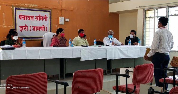सुशील ओझा, झरी: येथील पंचायत समितीला जिल्हा परिषद अध्यक्ष यांनी भेट दिली. दरम्यान पंचायत समितीच्या सभागृहात आढावा बैठक घेण्यात आली. बैठकीत तालुक्यातील सर्व विभागाचे अधिकारी उपस्थित होते. जिल्हा परिषद अध्यक्ष कालिंदा पवार आढावा बैठकीचे अध्यक्ष होत्या तर मंचावर पंचायत समिती सभापती राजेश्वर गोंड्रावार उप मुख्यकार्यकारी अधिकारी गुडदे गटविकास अधिकारी मुंडकर जिल्हा परिषद सदस्य संगीता मानकर पंचायत समिती सदस्य प्रणिता घुगुल उपस्थीत होत्या.