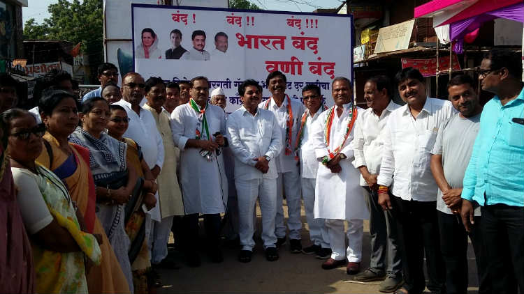 विवेक तोटेवार, वणी: पेट्रोल, डिजेलच्या वाढत्या किमतीमुळे आज दिनांक 10 सप्टेंबरला विरोधी पक्षांकडून भारत बंदची हाक देण्यात आली होती. भारत बंदचा परिणाम वणीतही दिसून आला. यात वणीतील सर्व विरोधीपक्ष वाजत गाजत सहभागी झाले होते. तर व्यापारी प्रतिष्ठाने बंद करून व्यापा-यांनी त्याला पाठिंबा दिला. यावेळी सरकारविरोधात जोरदार घोषणाबाजी करण्यात आली.