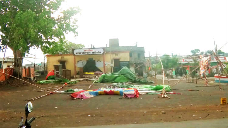 भागवत कार्यक्रमाचा मंडप वादळात जमीनदोस्त
