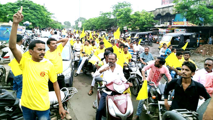 सकाळी 9 वाजता पाण्याच्या टाकीजवळील भिमालपेन देवस्थान येथून भव्य मोटार सायकल रॅली काढण्यात आली. या रॅलीमध्ये शेकडो लोक सहभागी झाले होते. ही रॅली टिळक चौक ते जिजाऊ चौक चिखलगाव, लोकमान्य टिळक महाविद्यालय, गांधी चौक, दिपक टॉकीज, आंबेडकर चौक या प्रमुख मार्गाने निघाली. रॅलीचा समारोप भिमालपेन देवस्थान इथे झाला.