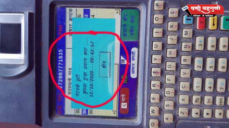 जब्बार चीनी,वणी: सार्वजनिक वितरण व्यवस्था अंतर्गत तालुक्यातील रास्त भाव दुकानांमधील ‘ई – पॉस’ मशीन दोन दिवसांपासून बंद आहे. जणू ती ‘नापास’ झाली आहे. त्यामुळे धान्य वितरणात अडथळा निर्माण झाला आहे. तालुक्यातील गरीब शिधापत्रिकाधारकांना रास्त भावातील धान्याचे वितरण करण्याची प्रक्रिया रखडली आहे .