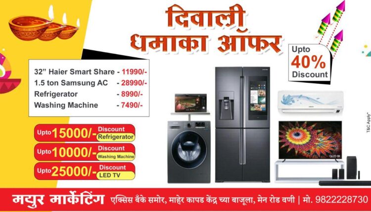 मयूर मार्केटिंग (आधीचे मयूर रेडियोज) हे गेल्या 15 वर्षांपासून आयएफबी (IFB), Bosch चे अधिकृत डिलर आहे. मयूर मार्केटिंग दर्जा, गुणवत्ता आणि उत्तम सेवेकरिता सुरुवातीपासून ते ग्राहकांच्या पसंतीस उतरत आहे. यासोबतच या दिवाळीत या शोरूमतर्फे विविध उत्पादनांवर दिवाळीस्पेशल बक्षीसे आहेतच.