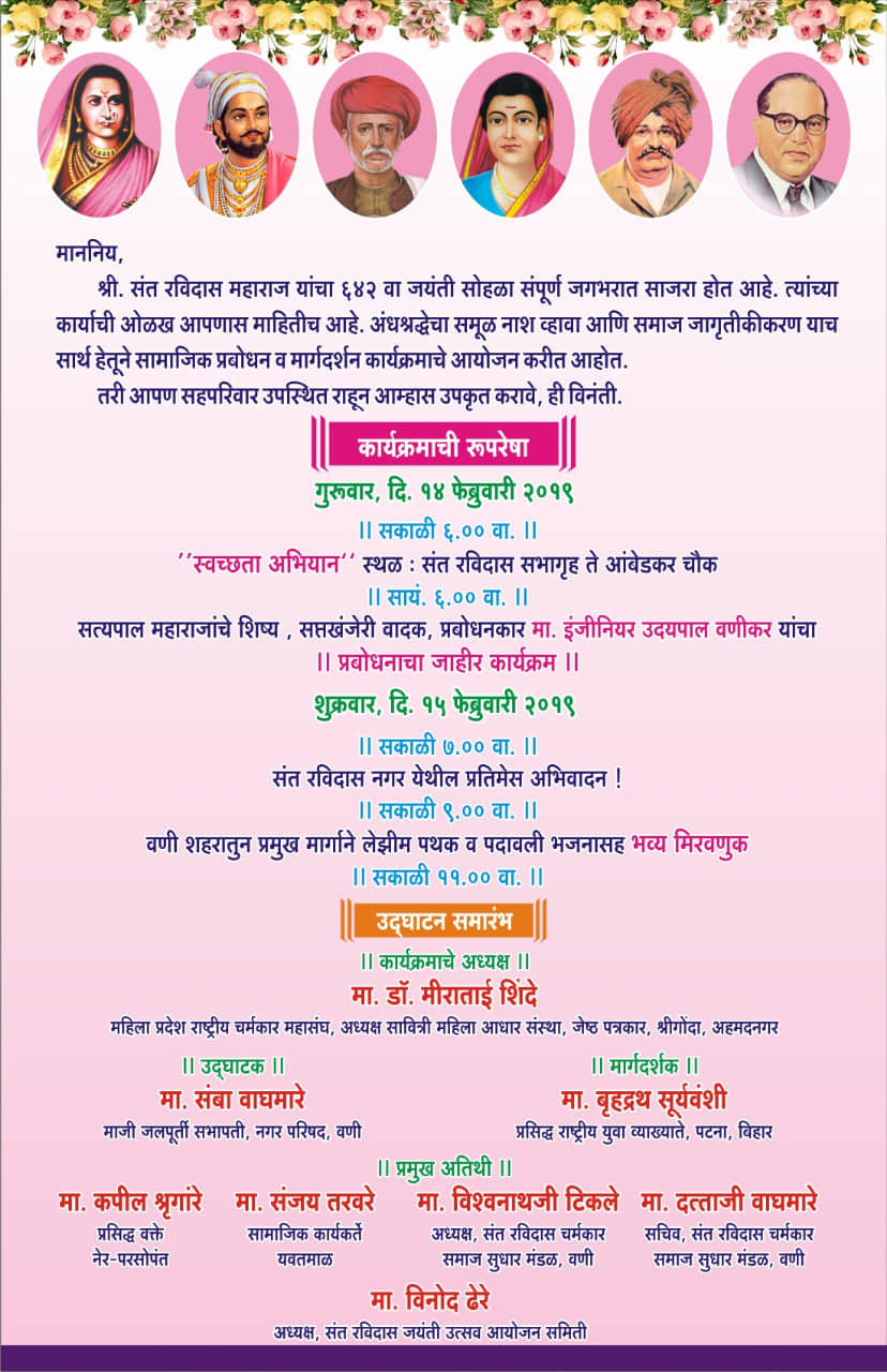 वणीत संत रविदास महाराज जयंती सोहळा 14 व 15 ला