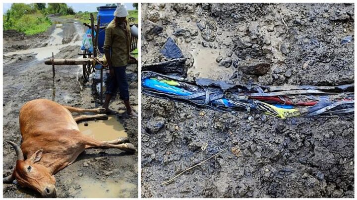 वाटेतच इस्माईल झवेरी यांच्या खदानीजवळ पांदण रस्ता खोदून टाकलेली वीज केबलवर बैलाचा पाय पडला. वीज केबल तुटून असल्यामुळे 440 व्होल्टेज विजेचा झटका बैलाला बसला व तो जागीच गतप्राण झाला. धड धाकट बैल मेल्यामुळे शेतकरी रवींद्र राजूरकर यांचे एका लाखाचे नुकसान झाले.