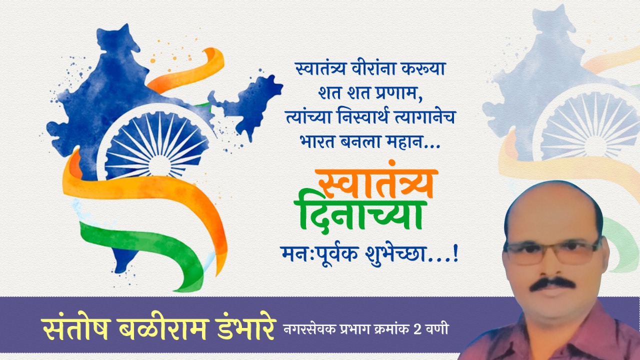 ऍडव्हटोरिअलवणीवार्ता 74 व्या स्वातंत्र्य दिनाच्या सर्वांना हार्दिक शुभेच्छा… शुभेच्छुक : संतोष डंभारे, नगरसेवक प्रभाग क्र. 2 वणी By WaniBahuguni Desk On Aug 14, 2020 0 19 Share Lead Story 0 19 Share WhatsAppFacebookTwitter