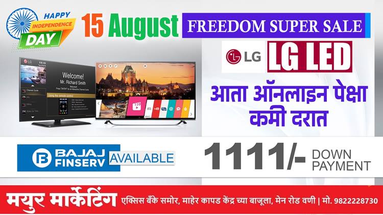 आधी मयूर रेडियोज नावाने असणारे मयूर मार्केटिंग हे प्रतिष्ठाण परिसरात एक सुपरिचित नाव आहे. 1980 पासून हे प्रतिष्ठाण इलेक्ट्रॉनिक्स वस्तूंच्या विक्रीच्या व्यवसायात असून आपली सेवा आणि विश्वास यासाठी ओळखले जाते. यंदाचा स्वातंत्र्य दिन आपल्या पसंतीची वस्तू घरी आणण्याची ही सुवर्ण संधी मयूर मार्केटिंगने ग्राहकांना दिलीय. या दिनी आपले स्वप्न पूर्ण करा. असे आवाहन मयूर मार्केटिंगचे संचालक बतरा बंधू यांनी केले आहे.