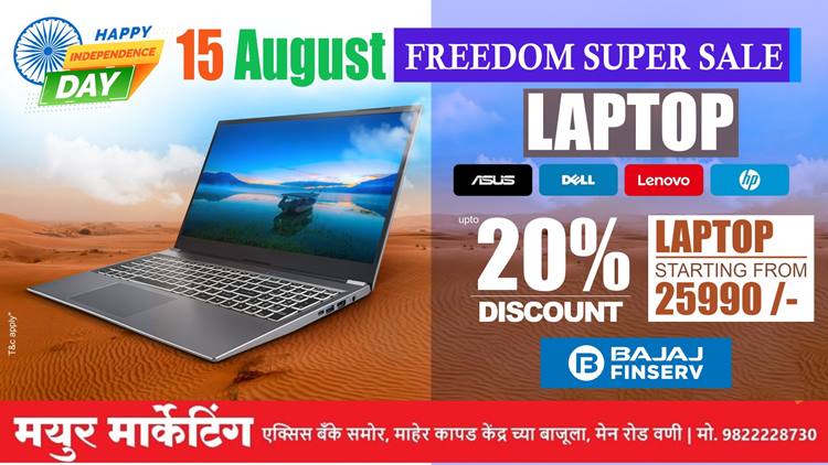 मयूर मार्केटिंगमध्ये सुप्रसिद्ध ब्रँडच्या लॅपटॉपच्या लेटेस्ट सिरिज आल्या असून त्या एकदा ग्राहकांनी नक्की बघण्यासारख्या आहे. यात असूस, डेल, लेनोवो, एचपी, एमएसआय, ऍप्पल इत्यादी ब्रँडच्या वस्तू विशेष म्हणजे या ब्रँडवर 20 टक्के पर्यंतचे डिस्काउंट दिले जाणार आहे.
