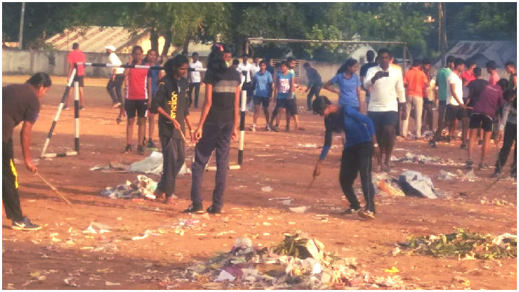 शुक्रवारी शेकडो क्रीडाप्रेमींनी केली मैदानाची सफाई