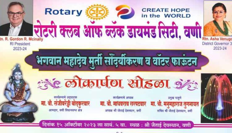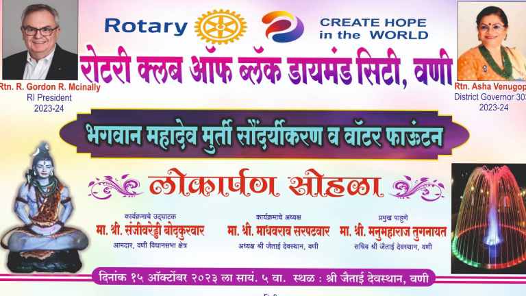 भगवान महादेव मूर्ती व वॉटर फाउंटन लोकार्पण सोहळयात जास्तीत जास्त भाविक भक्तांनी उपस्थित राहण्याचे आवाहन रोटरी क्लबचे अध्यक्ष रोटे. आशिष गुप्ता, सचिव रोटे. अश्विन कोंडावार, प्रोजेक्ट डायरेक्टर रोटे. अचल जोबनपुत्रा, रोटे. विनोद बाजोरिया, रोटे. रुद्र ताटेवार यांनी केले आहे.
