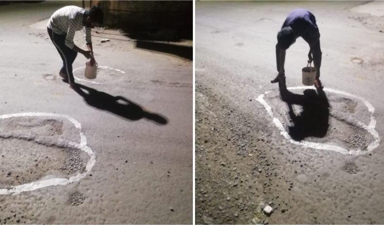 लॉकडाऊन काळातील युवासेनेचे खड्डा रंगवा आंदोलन
