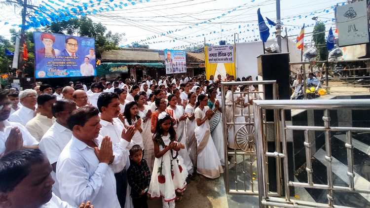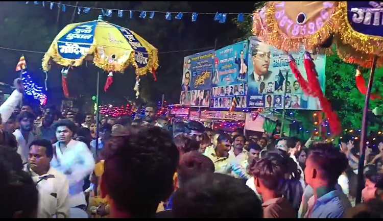 वाजत गाजत निघालेल्या या रॅलीची रात्री डॉ. बाबासाहेब आंबेडकर यांच्या पुतळ्याजवळ सांगता झाली. यावेळी पंचशील घेण्यात आले. रॅलीदरम्यान ठिकठिकाणी पोलिसांनी चोख बंदोबस्त ठेवला होता.