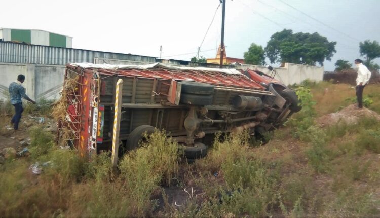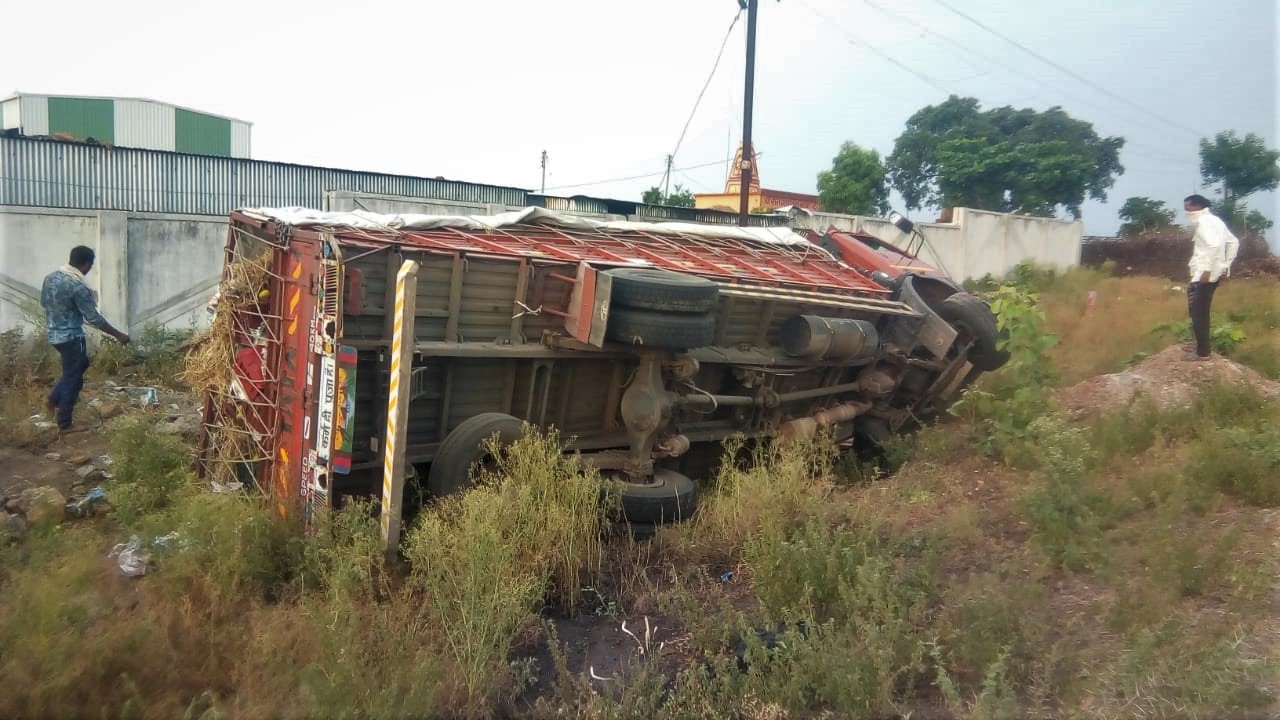 आंबे नेणारा ट्रक पलटी, चालक गंभीर जखमी