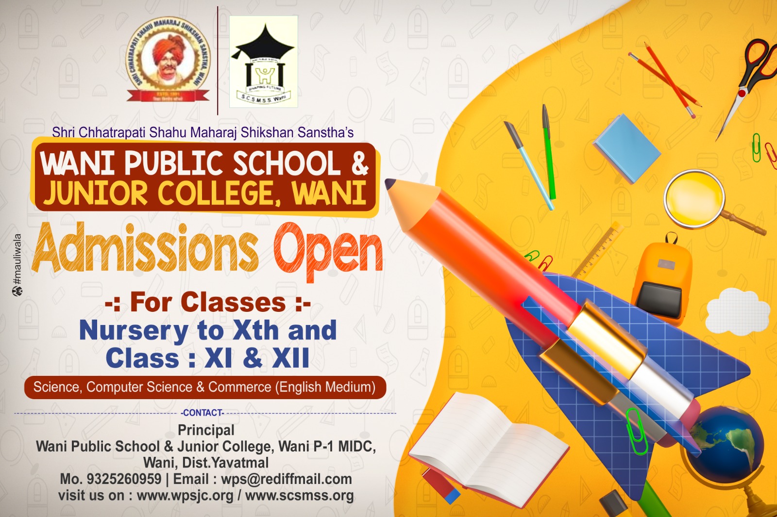 वणी पब्लिक स्कूल ज्युनिअर कॉलेजमध्ये प्रवेश प्रक्रिया सुरू