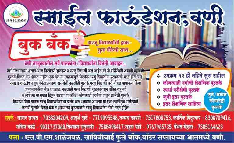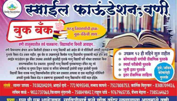 शहरातील अनेक विद्यार्थी नीट, जेईई, यूपीएससी, एमपीएससी स्पर्धा परीक्षाची तयारी करीत आहे. मात्र अनेक गरजू व गरीब विद्यार्थ्याना स्पर्धा परीक्षेच्या तयारीसाठी महागडी पुस्तके विकत घेणे परवडत नाही .स्माईल फाऊंडेशनने सुरु केलेल्या बुक बँक या उपक्रमामुळे गरजू विद्यार्थ्यांना पुस्तकांची मदत होईल. स्माईल फाउंडेशन बुक बँकेत उपलब्ध असलेली पुस्तके गरजू विद्यार्थी मोफत वाचायला किंवा वापरण्याकरिता घेऊन जाऊ शकतात.