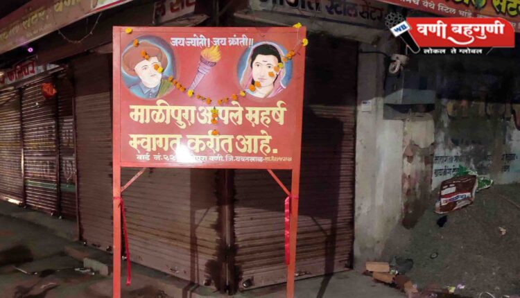 विवेक तोटेवार, वणी: 10 सप्टेंबर रोजी एका व्यावसायिकाने आपल्या दुकानासमोर येत असलेला फलक नगर परिषदेच्या सहमतीने हलविला होता. त्यामुळे माळीपुऱ्यातील अनेकांच्या सामाजिक भावना दुखावल्यात. याबाबत अनेक वाद झालेत. त्यानंतर सर्वसहमतीने महात्मा ज्योतिबा आणि क्रातज्योती सावित्रीबाई फुले यांच्या फलक पुन्हा लावण्यात आला.